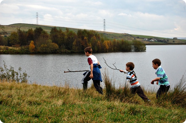 Beautiful crisp and dry autumn weather has been ours all weekend. What better way to pass the time then, than outside in said beautiful weather. All our men were working at one thing or another, Caroline was working too so on Saturday afternoon Victoria and I took our three boys and three dogs off up to Watergrove.